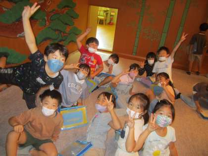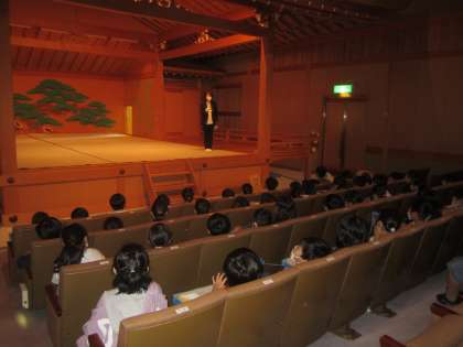 今日は富山市能楽堂に行ってきました。最初は「それってどこ?」と言っていた子供たちも、1学期に町探検で行った南公園を通り、テクノホールや富山市体育文化センターがある近辺に来ると「ここかあ〜!」と、改めて気付いたようです。