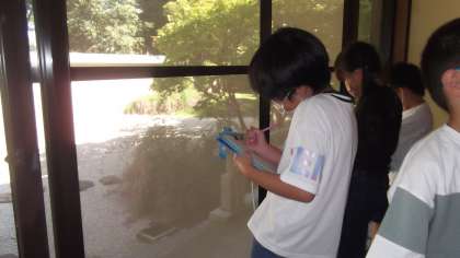 中に入ると、大きなステージがあり、びっくり!その後、茶室へ行くと、富山湾や富山平野をテーマにした庭や広い畳の部屋にもっとびっくり!!初めて見るものばかりの町探検になりました。