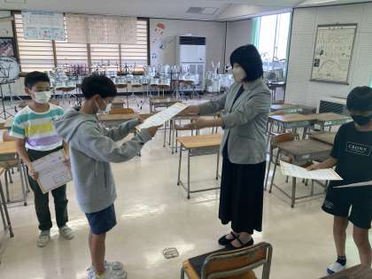 10月3日(月)反射材キーホルダー贈呈式・草むしりバトル表彰式