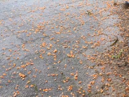 雨の朝となりました。一日中肌寒く「グラウンドへ出て遊べない!」と、子供たちは残念そうでした。キンモクセイの花も雨に打たれて多くが落ちてしまいました。一日一日季節ガ進んでいきます。