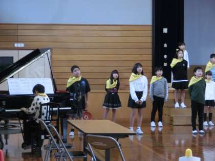 2曲目の「元気 勇気 ちから」は、1回聞いただけでみんな大好きになる元気な歌です。その元気な歌声は、聞いている全校の子供たちにも元気を与えたようでした。
