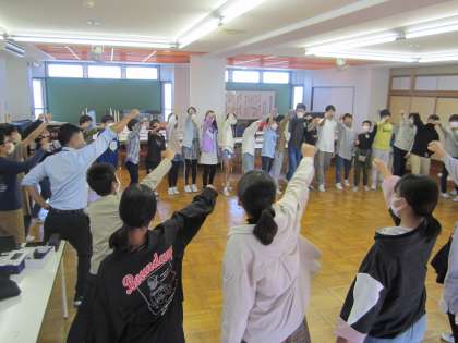 最後の練習が終わったあと、みんなで気合いを入れました。