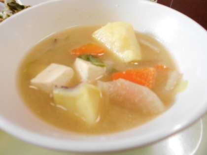 今日は、さつま汁が出ました。27日の新保っ子フェスティバルでは、縦割り班で「さつま汁」を作るので、野菜の切り方やさつま汁がどんなものか分かってちょうど良かったです。食物せんいが豊富で、腸の働きを活発にし、生活習慣病の予防も期待できるさつまいもを美味しくいただきました。