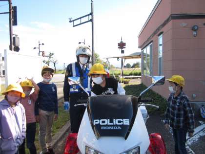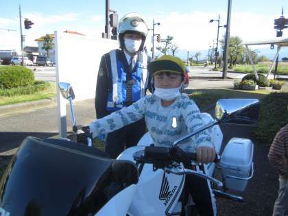 また、パトカーや白バイに一人ずつ乗せていただきました。最後にお土産の下敷きまでいただきました。本当に貴重な体験となりました。