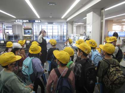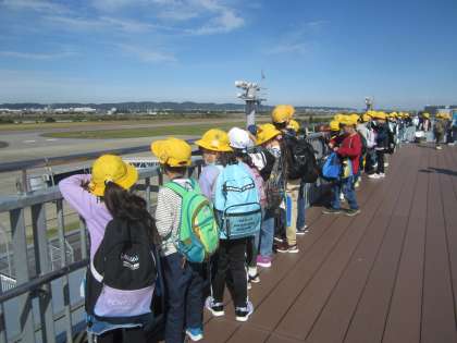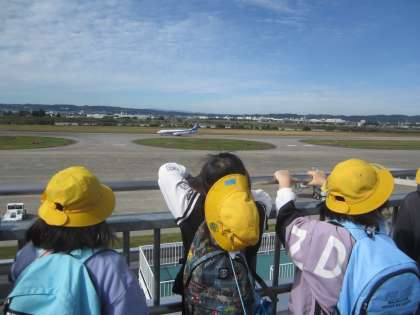 次に、富山きときと空港へ行きました。空港では館内の見学をした後、展望デッキに行き、飛行機が着陸するのを待ちました。10月の下旬とは思えないくらい天気がよく、暖かい日だったので、飛行機が富山空港へ向かっているのがよく見えました。