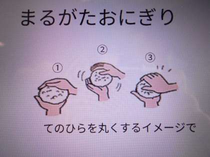 今日は、栄養職員の中村さんから「おにぎりの作り方」講習がありました。ご飯を炊くところからでも、おにぎりをつくること、おにぎりをのりや昆布で包むことでも良いので、家でチャレンジしてみましょう。