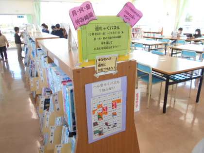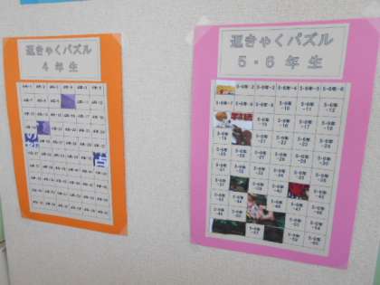 図書室では「読書ビンゴ」「返却パズル」開催中。読書の秋もどんどん深まっているようです。