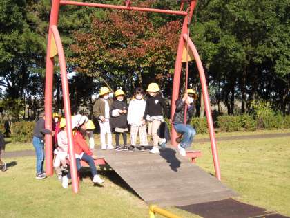 たくさんの「すてき」を見付けた後は、広場で遊びました。順番を守って譲り合ったり、仲間を誘ったりして、仲良く遊ぶことができました。