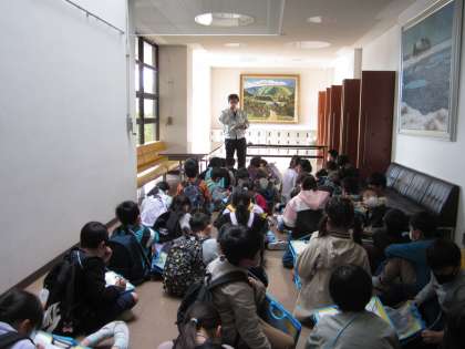 今日は最後の町探検!地区センターに行ってきました。地区センターとはどのような施設なのか、なぜ新保地区では花を育てているのか、地区センターの前にある石碑は何なのか等、子供たちの質問に対して丁寧に答えていただきました。