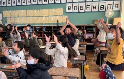 「新保ステキサンシャインズ」というチーム名でエントリーしていた「全国小・中学校リズムダンスふれあいコンクール」の予選通過チームが11月10日に発表され、見事、全国大会出場を決めました。写真は、予選通過チーム発表の瞬間、喜びを爆発させた子供の様子です。