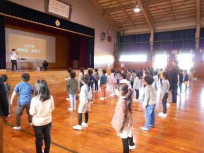今日は、今年度初めての「歌声集会」がありました。マスクを付けたままで歌いましたが、伸びやかな元気な歌声が体育館に響きました。来月の集会も楽しみですね。