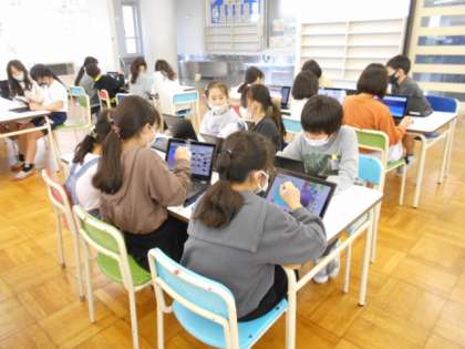 3年生は、殿城先生と一緒にプログラミング学習を行いました。これで3時間目なので、発想豊かにキャラクターなどに動きを付けるなどして、プログラミングを楽しみました。