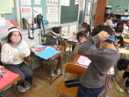 2年生:図画工作科「わっかでへんしん!」:12月7日(水)