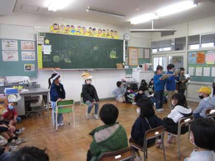 まずは、2年生の番です。国語科で学習した「お手紙」の音読劇を披露しました。「声がそろっていてよかった」「かえるくんが優しいと思った」など、たくさんの感想をもらい、とても嬉しそうな子供たちでした。