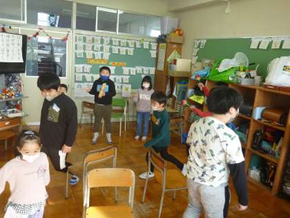 画像(左) 「椅子取りゲーム」座れなかった人は、音楽に合わせて踊ったり歌ったりしました。