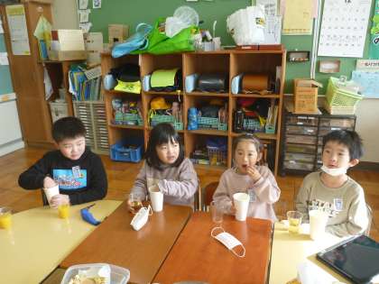 画像(右) 「会食」自分たちで育てたポップコーンを食べました。残った実をお土産に持って帰りました。