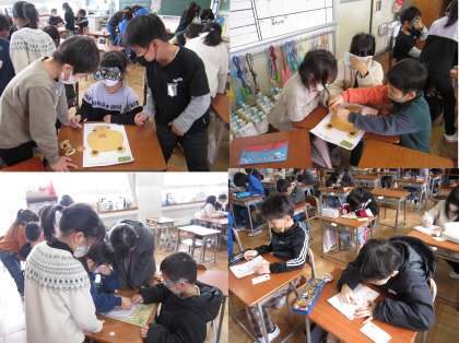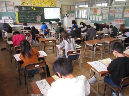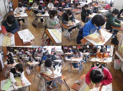 始業式の後、教室で校内書き初め大会行いました。冬休み中にたくさん練習したのでしょう。一画一画丁寧に、気合いを入れて書いている様子が伝わってきました。