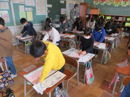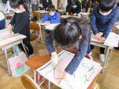 書き初め大会では、心を落ち着かせ集中していました。冬休み中に練習した成果が発揮されました。