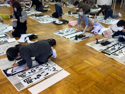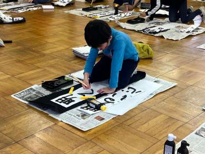 毛筆での書き初め大会は初挑戦でした。心を落ち着かせ、集中して取り組みました。