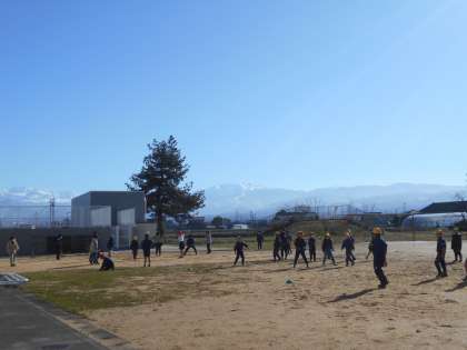 昨年、一昨年は大雪だった3学期の始まりですが、今年はグラウンドや歩道に雪もなく、すっきりと晴れ渡る空が広がりました。