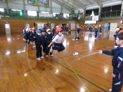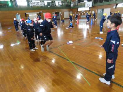 2月下旬の大縄跳び大会に向けて、8の字跳びの練習をしています。みんなリズムよく縄の中に入り、跳ぶことができるようになってきました。1年生にとっては縄を調子よく回すのは難しいのですが、跳んでいる友達のタイミングを見ながら上手に回していました。