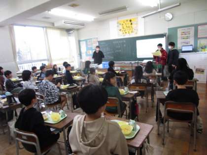 たてわりプレゼントグループのメンバーと有志で、各クラスに手紙の協力の依頼に行って来ました。