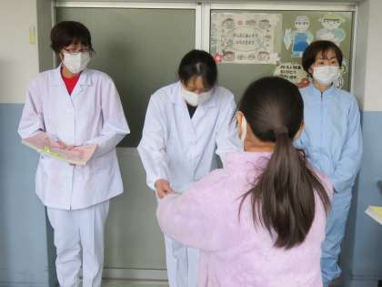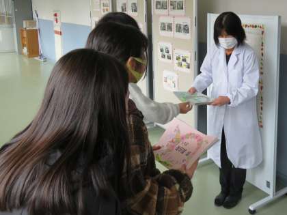 調理員さんや栄養職員さんへの感謝の手紙は、週間中にクラスの代表が放送で読みました。全校のみんなが書いた手紙は、給食委員会が代表して手渡ししました。