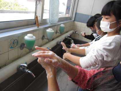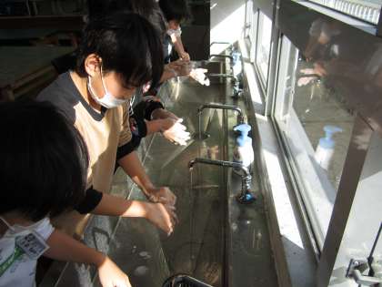 保健の学習で体の清潔について学習をしました。手を洗わなかったとき、水だけであらったとき、石けんで30秒以上丁寧に洗ったときの手に付いている細菌の違いを見て、「手はしっかり洗わないといけない」と再確認し、正しい手洗いに挑戦しました。