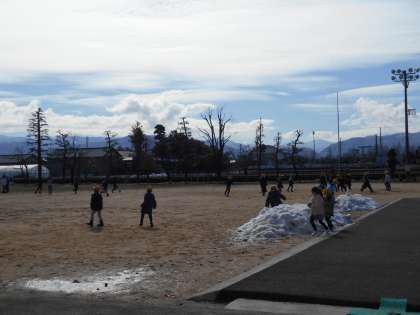 寒い日、暖かい日が交互にやってくるこの頃ですが、子供たちは晴れ間を見付けたらグラウンドに遊びに出てきます。今日も、雪がすっかり溶けたグラウンドで、思い切り遊んでいました。元気いっぱいです。