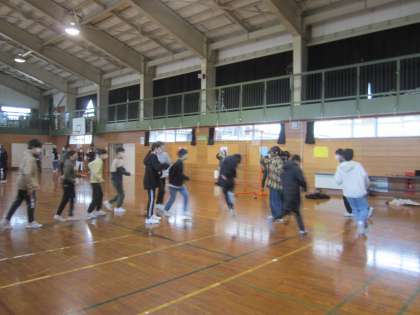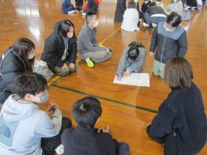 大縄、綱引き、バスケットシュート、学習クイズで、家の人と対決したり、協力したり、活動を楽しみました。