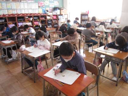 3月に入りました。昨日は国語科、今日は算数科の「学習のたしかめ」をしました。すらすらと解いている子供たちですが、もったいないケアレスミスも・・・。また授業で見直しをしましょうね。