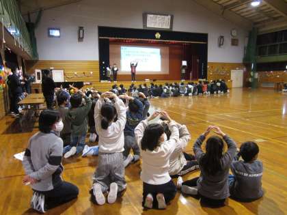 5年生が企画・準備した「卒業を祝う集会」に参加しました。2年生は「6年生の素敵見付け隊」として、6年生の素敵なところを伝えました。また、「元気パワー」を送りました。他の学年の出し物で楽しんだり、歌「また合う日まで」で気持ちを伝えたりと、素敵な時間になりました。