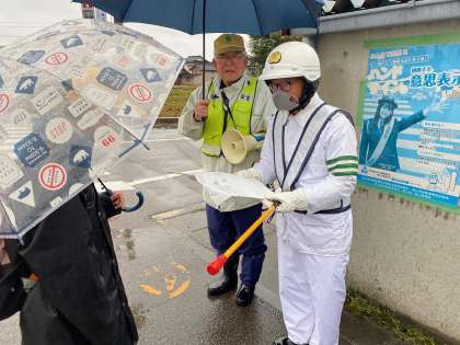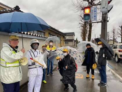 6年間、どんな時も新保っ子を見守ってくださった方々に感謝の思いを込めて、旗と手紙を贈らせていただきました。今日は一緒に登校の見守りもさせていただき、6年間の感謝を伝えることができました。