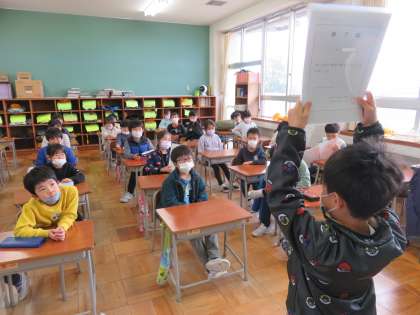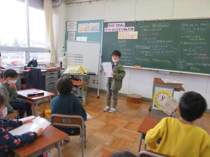 教室で修了証をもらった子供たち。1年間の楽しかったことを一言ずつ発表しました。一年間、ありがとうございました。