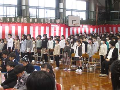 在校生の代表として、6年生と一緒に入学式に参加しました。校歌や歓迎の歌「元気・ゆう気・ちから」を気持ちを込めて歌いました。これから、登校班やたてわり班で仲良くしていきましょうね。