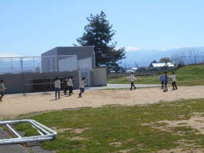 暖かく晴れた日は外遊びが人気です。さっそく学級の友達と遊ぶ姿が見られました。