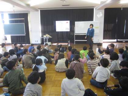 学年集会を開きました。これまで、どんなクラスにしたいのか、どんな学校生活にしたいか話し合ってきたことをスライドにまとめ、みんなで改めて共通理解をしました。