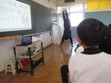 今年度最初の学年集会では、担任の自己紹介と1年間の流れについて話をしました。その後、「高学年」になった今、頑張りたいことや楽しみなことについて話しました。「勉強が難しくなるので頑張りたい」「優しい言葉遣いを心がけたい」等の「自分のこと」と、「委員会で学校を動かしたい」「下級生に優しくしたい」等の「学校・まわりの人のこと」の、どちらも意識して生活することができるよう、5年生はパワーアップしていきます!