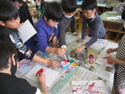 今日の図画工作科では、様々な道具を使って描く「絵の具でゆめもよう」の学習を行いました。ビー玉を転がして線をつけたり、歯ブラシを使って絵の具を飛ばしたりするなどいつもと違う表現を楽しみました。