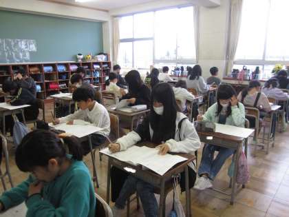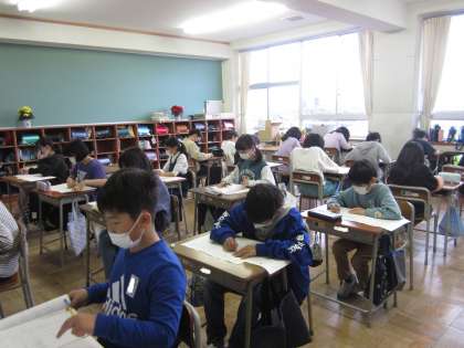 今日は国語科と理科の学力調査がありました。長い問題文を一生懸命読み、よく考えて解いていました。明日は算数科と社会科です。