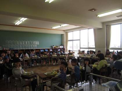 数年ぶりの、グループになっての給食です。みんなの顔を見ながら食べる給食は、いつも以上に美味しいね♪