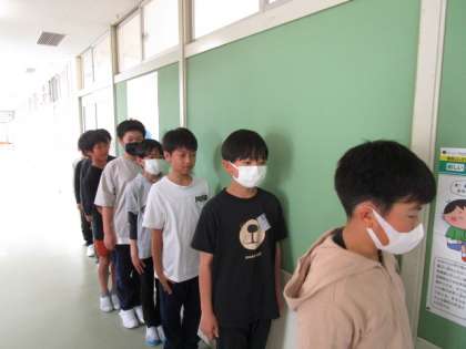 身体測定に続いて、視力測定を行いました。待ち方も素敵ですね。