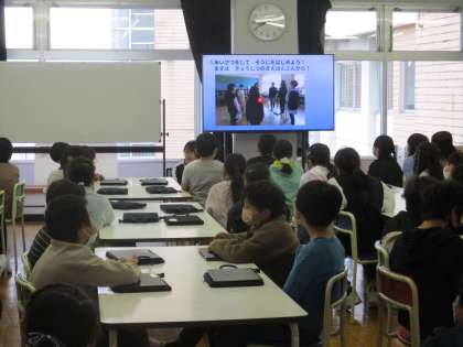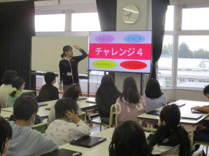 学年集会で、学年のテーマを発表しました。4年生のテーマは「チャレンジ4」。子供たちのこつこつ頑張りたい気持ちや挑戦したい気持ちを大切にしていきたいと思います。その後は掃除の仕方やクロムブックの使い方について学年で確認をしました。