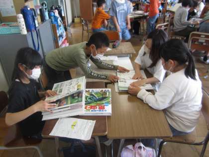 昨日の理科の授業では、生き物探検に行きました。「この花の名前ってなんだろう?」「図鑑やクロームブックで調べたい!」という子供たちのリクエストに応えて、今日は図鑑で生き物調べをしました。「あっ!これだ!」「これは、ちょっとちがうな」と、よく特徴を見て、くわしく調べる子供たちでした。