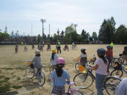 3年生:交通安全教室:4月28日(金) 公開日 2023/05/01 更新日 2023/05/01 3年生の部屋 今日は、交通安全教室がありました。2組は自転車に乗る実地体験から行い、その後、体育館で安全な自転車の乗り方について学びました。自転車のブレーキには、右と左で前輪後輪にかかるブレーキが変わっていることを知り、左右の順でブレーキをかけないと、急に止まって危険なことが分かり、びっくりしている子供たちでした!