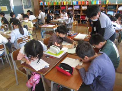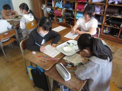 今日は、1組で4種類の種の観察を行いました。「ホウセンカの種は茶色だけでなく、少し丸いつぶつぶの模様がある!」と虫眼鏡でよく観察し、新たな発見がありました。