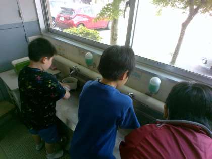 4月28日(金)の清掃活動は、水拭きの日でした。自分で雑巾を絞り、床を拭きます。床がきれいになると、心もスッキリします。