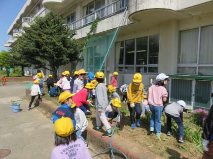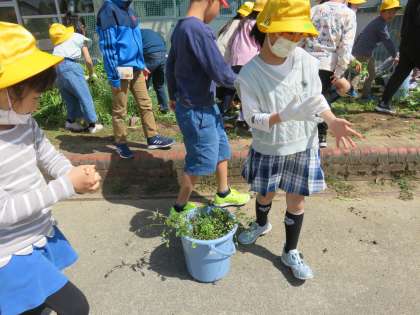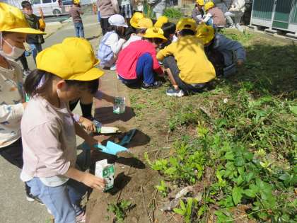 2年生:草むしり:5月2日(金) 公開日 2023/05/02 更新日 2023/05/02 2年生の部屋 花壇の草むしりをしました。草むしりのはずが、ダンゴムシやアリ等、虫の方に夢中になっていました。団毎にバケツいっぱいの草をむしりました。草むしりをした花壇の一部は、2年生の畑になり、ポップコーンを植えます。牛乳パックのポットに土を入れ、種をまきました。