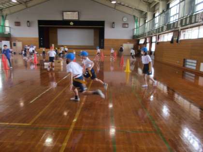 今日はフラッグフットボールのルールで3対2のミニゲームを行いました。早速チームで作戦をたてたり、相手の動きをよく見て素早く動いたりしました。どんどん作戦をたてて楽しみたいと思います。