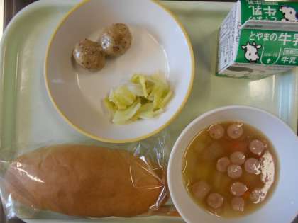 今日の献立は「サミット献立 ドイツ」で、ライ麦パン、フリカデレ、ザワークラウト、アイントプフ、牛乳 です。
